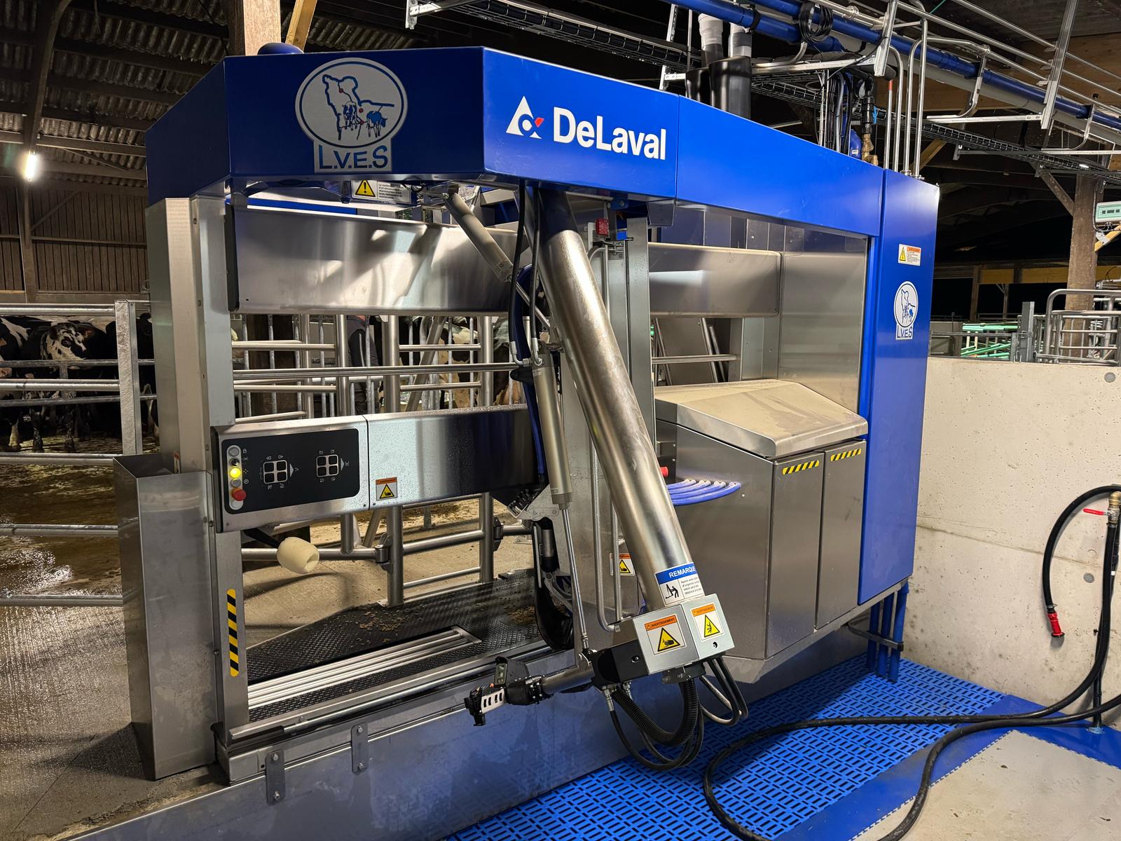 - Le box de traite a été agrandi afin d’accueillir plus facilement les vaches de grand gabarit. Cette conception améliore la circulation dans la station de traite et réduit le stress des animaux.
